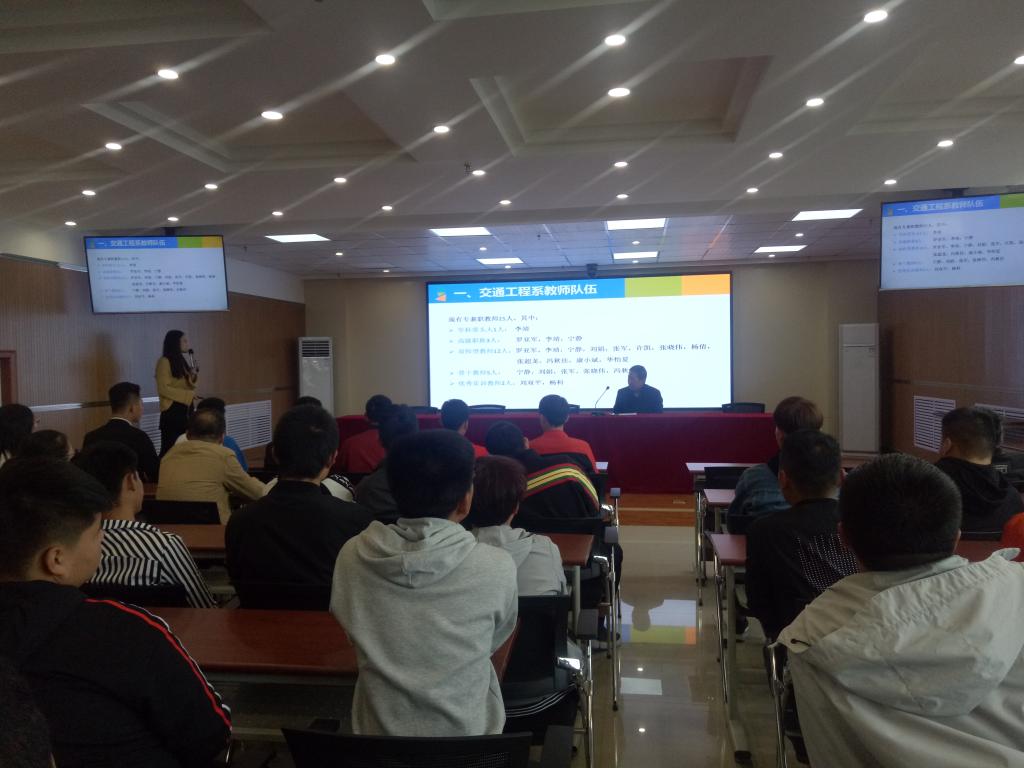 为了使广大新生能够更好更快地适应大学学习生活,2018年10月16日下午,我系2018级新生专业教育暨迎新会在汽车机电大楼4楼视频会议室顺利举行,交通工程系主任罗亚军、副主任李靖及交通工程系全体教师、优秀学生代表参加了本次大会,本次大会由副主任李靖主持。
