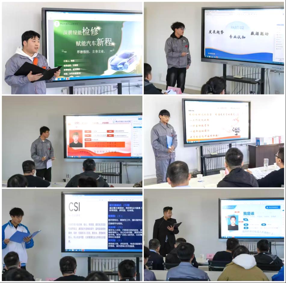 下午2时30分,比赛正式开始。两个赛场上的15名参赛者依次亮相。他们紧密围绕新能源汽车行业以及智能网联行业的发展趋势,结合个人的专业技能和职业兴趣,明确地阐述了各自的职业目标和发展规划。参赛者们不仅针对新能源汽车销售岗位提出了“积累车型知识、提高客户沟通技巧”的成长方案,而且在汽车维修领域也制定了“获取新能源汽车维修工职业资格证、熟练掌握三电系统检修技能”的提升计划。这些规划凸显了实际操作性和务实性,不再仅限于理想化的表达,而是综合考虑了技能提升、岗位匹配和问题解决等实际因素。参赛者们凭借专业知识和对行业的深刻理解,提出了切实可行的思路,体现了新时代大学生在就业方面的理性思考和积极适应。