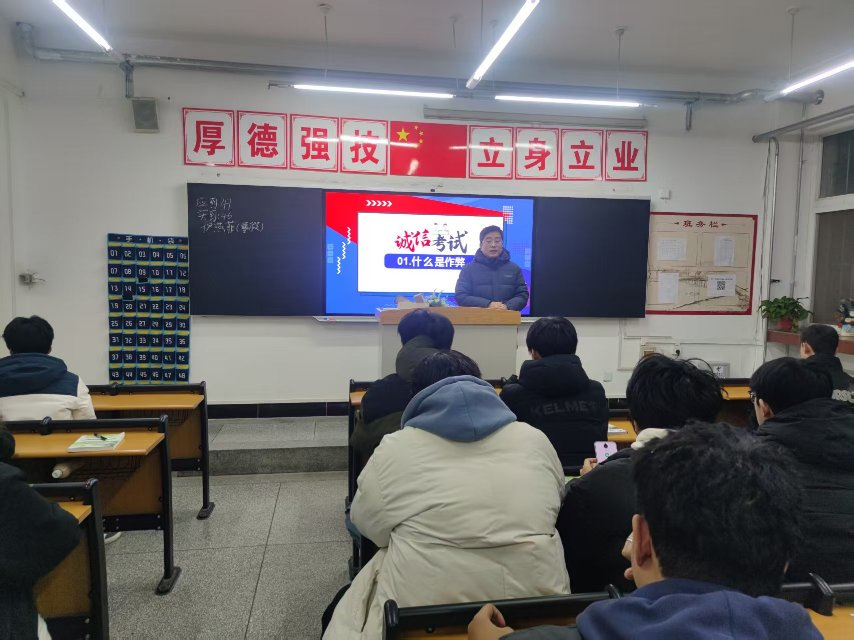 为进一步强化学生考风考纪意识,夯实诚信立身根基,同时筑牢假期安全防护屏障,保障学生度过平安有序、充实有意义的寒假,1月3日晚自习,交通运输学院组织全体学生召开诚信考试暨寒假安全教育主题班会。各班班主任围绕两大核心主题,进行系统讲解与全面部署,为学生送上“考前规范+假期保障”的双重指导。