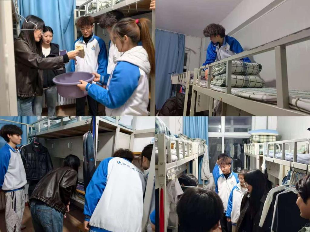 本次专项行动由交通运输学院党支部书记王枢统筹带队,班主任雷沙沙、楼长高瑞珧、辅导员杨勇志担任检查代表,联合各班班主任与团员学生组建专项检查小组,深入学生宿舍开展全面排查与规范,整理指导。首日雷老师、杨老师率先带领小组前往 22 号楼,从床铺平整度、物品摆放秩序,到地面清洁程度、用电安全隐患,逐一细致查看,重点排查大功率电器,行动中,团员学生主动亮身份、作表率,次日,5S行动小组前往28号楼现场示范标准内务整理方法,细致讲解日常收纳与卫生保持实用要点,以实际行动引导同学们养成良好生活习惯。