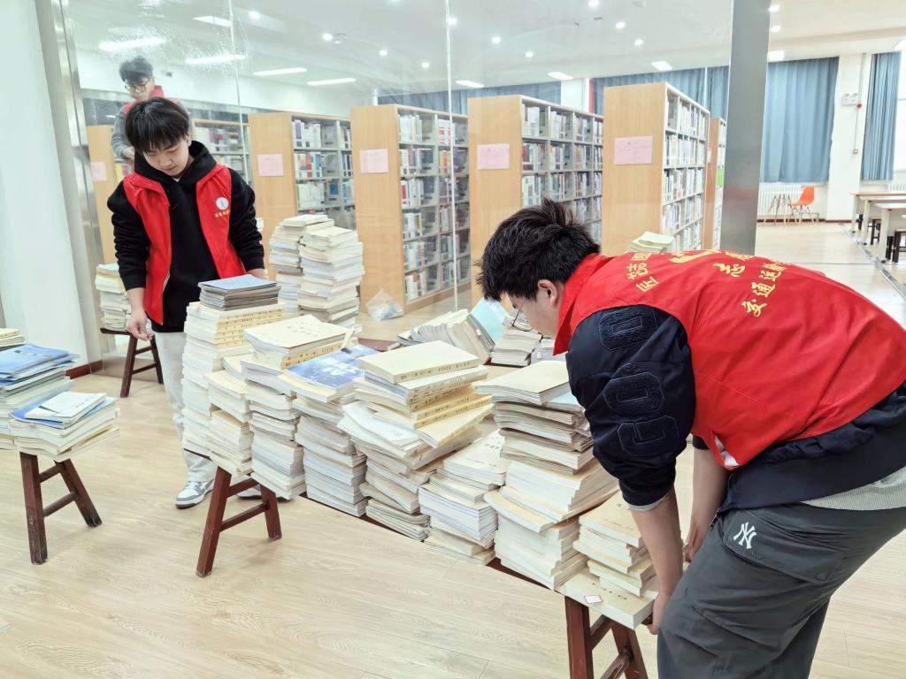 图书馆内,志愿者们以饱满的热情投入劳动,个个精神抖擞、认真细致。在藏书区,志愿者们轻拿轻放,认真擦拭书架边角,将错位、散落的图书按照索书号逐一归位,让书架排列得整整齐齐;针对楼梯间、书架缝隙、墙角等卫生死角,大家相互配合,用垃圾夹清理顽固杂物,让隐蔽区域也焕然一新。整个清扫过程中,志愿者们不怕脏、不怕累,分工协作、默契配合,忙碌的身影穿梭在图书馆的各个角落,成为春日里书香校园中最动人的风景。经过近两个小时的辛勤劳作,图书馆各个区域窗明几净、书架整齐、环境整洁,以全新的面貌迎接师生到来。