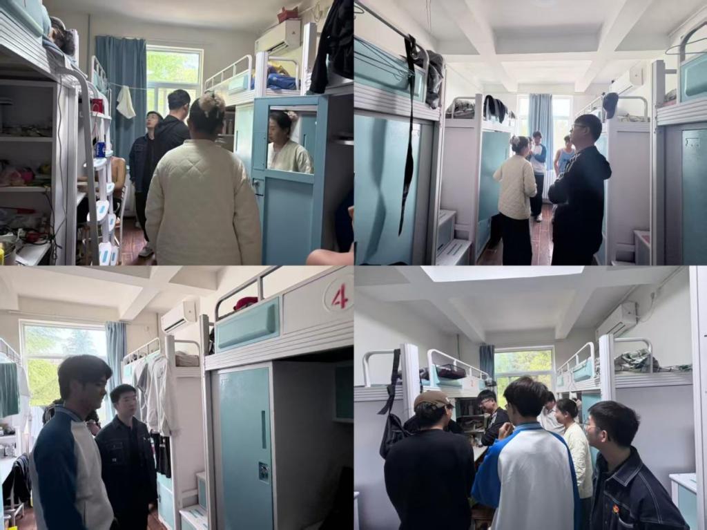 教师党员白瑞刚主动靠前、示范带头,联合班主任黄振子、楼长 董妍组建专项帮扶小组,深入 15 号楼 24 智能网联班学生宿舍开展精准帮扶工作。帮扶小组严格遵循 5S 管理标准,对床铺规整、物品分类摆放、桌面清洁、地面卫生、阳台收纳、隐蔽区域清理等内务细节逐一检查,同时全面排查违规电器、私拉电线、杂物堆放等安全隐患,实现宿舍全覆盖、无死角、无遗漏。