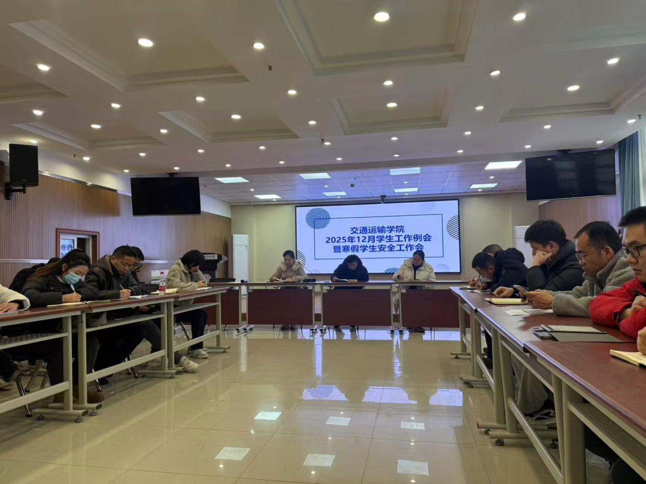 此次会议的召开,既明确了 12 月份及假期学生工作的重点任务与推进方向,又进一步强化了学生安全工作的责任意识。下一步,交通运输学院将严格按照会议部署,细化工作举措、狠抓落实见效,全力守护学生假期安全,切实保障各项学生工作落地生根,为学生成长成才保驾护航。