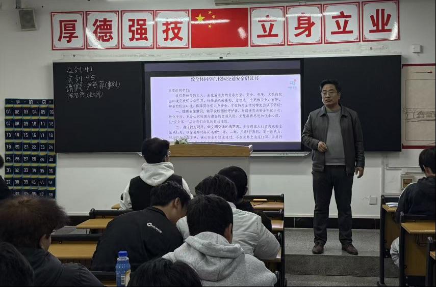 班会上,各班共同学习了《关于加强校园交通安全和出入车辆管理工作的通知》《致全体同学的校园交通安全倡议书》等文件。同时组织全体学生签订了《陕西机电职业技术学院学生校园安全承诺书》。各班通过管理交通安全教育视频,班主任讲解交通安全事例等方式,提高学生安全意识。