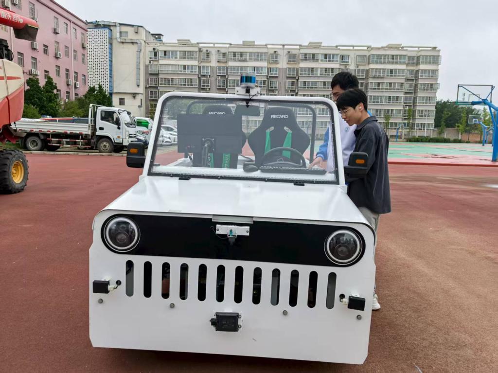 2025年9月12日上午,交通运输学院老师李子卓带领吉新星社团成员,携智能网联车教学设备前往千阳县体育场。