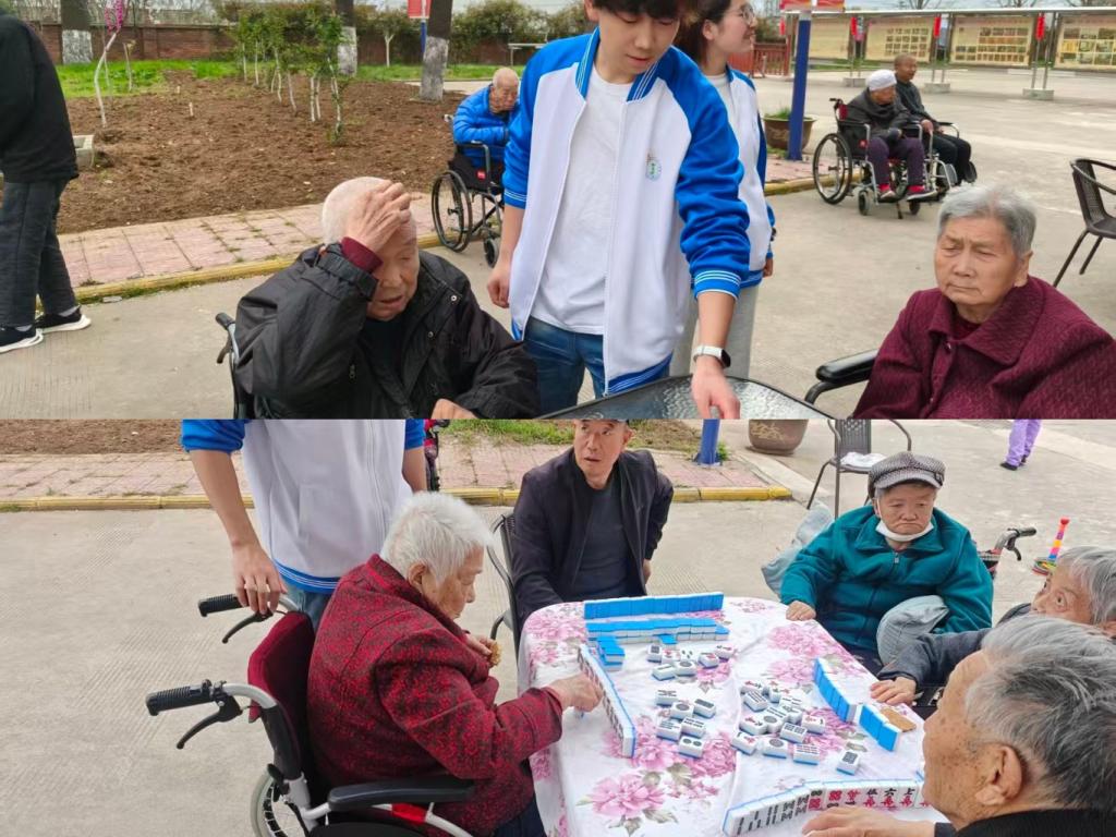 中午,志愿者们在康养中心活动广场开展趣味陪伴活动,为老人们的生活增添欢乐。志愿者们结合老人的兴趣与身体状况,组织开展棋牌对弈与积木搭建等互动游戏。棋牌桌旁,志愿者们耐心陪伴老人,老人们在博弈中收获快乐;积木游戏区,同学们手把手教老人动手操作,引导老人完成积木搭建,现场笑声不断,老人们脸上洋溢着幸福的笑容,纷纷为志愿者们的贴心互动点赞。