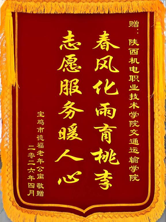 近日,交通运输学院匠芯志愿服务队收到了一份来自社区与康养中心的温暖肯定。西关社区对学院志愿服务工作的成效给予高度肯定,授予学院“志愿服务先进集体”荣誉称号;德福康养中心送来锦旗,以此感谢学院志愿者们长期以来对老人们的关爱与付出,充分肯定我校学子展现的社会责任感与奉献精神。