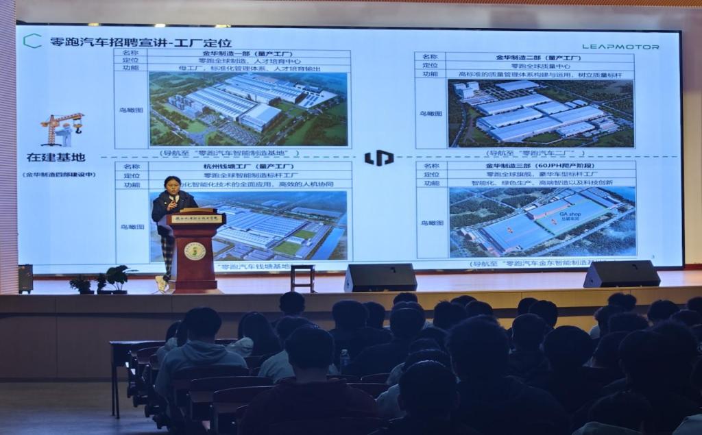 零跑汽车有限公司,长兴吉利部件有限公司两家企业受邀到场,围绕企业发展历程、核心业务布局、技术研发优势、企业文化理念、人才培养体系、岗位招聘需求及薪酬福利等内容,向在场学生展开全面细致的讲解。