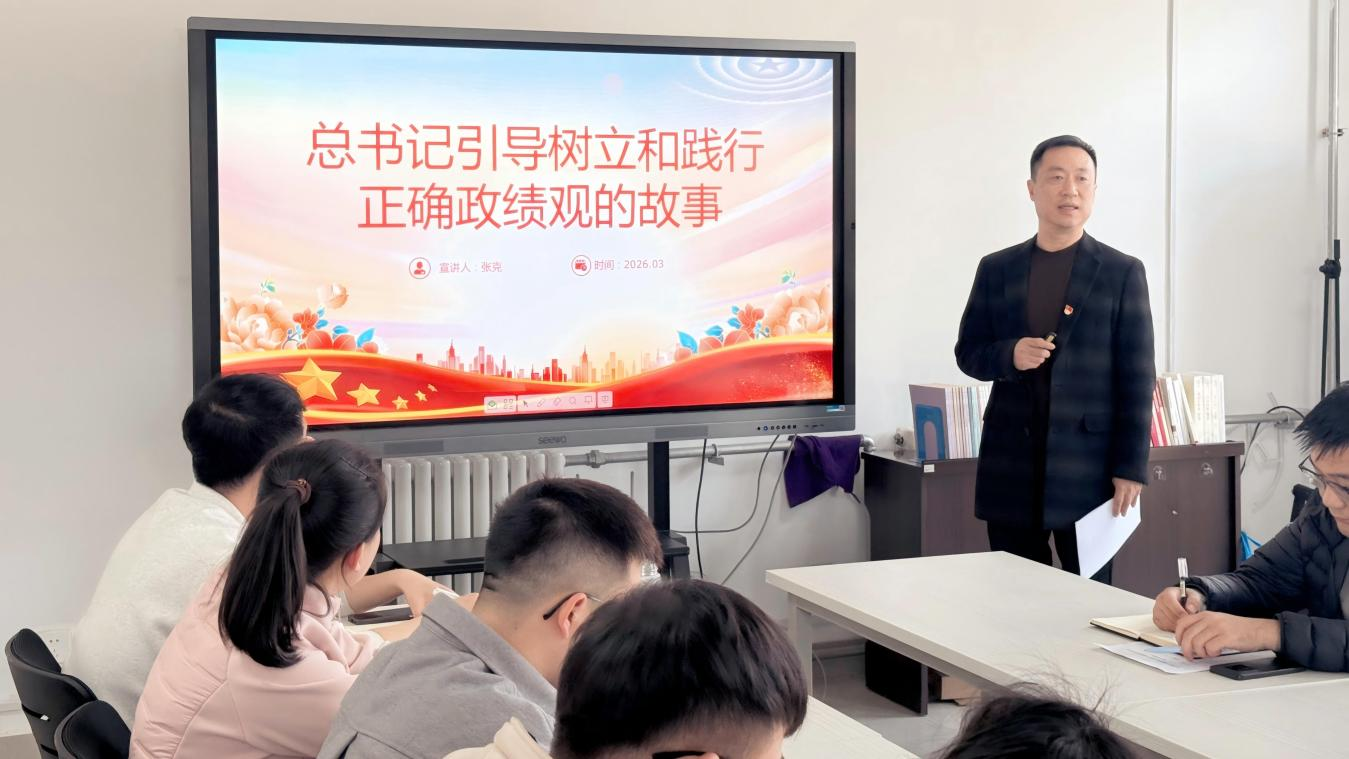 为深入学习贯彻党中央关于树立和践行正确政绩观学习教育的部署要求,引导支部党员筑牢思想根基、强化责任担当,2026年3月24日,学校党委委员、副校长张克以“习近平总书记引导树立和践行正确政绩观的故事”为主题,为交通运输学院党支部全体党员讲授专题党课。交通运输学院党支部全体党员参加学习。